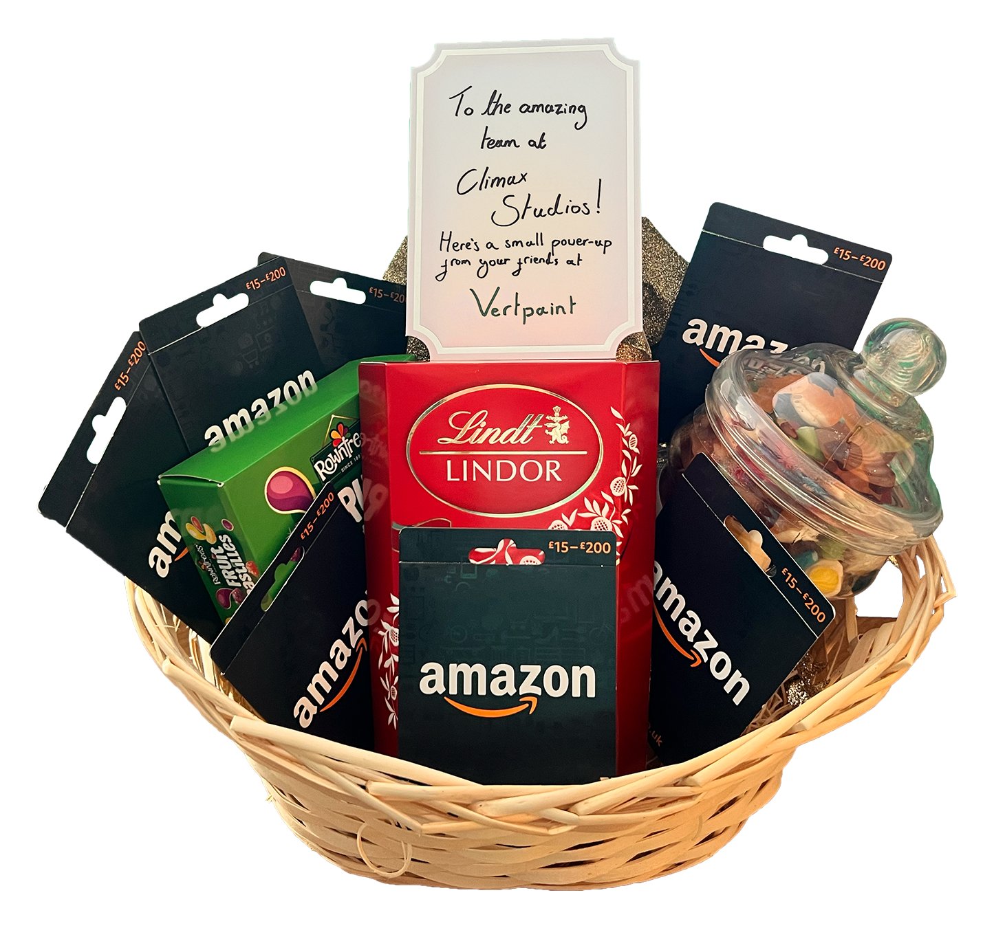 Vertpaint Studios logo with a stylized white 'V' on a green and blue abstract background, accompanied by the text 'Vertpaint Studios, Computer Games, London, 29K followers.'